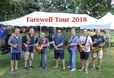 It all began circa 2015. Two high school classmates and bandmates from the 70s got back together to jam in the basement. Al Novak and Rick Luciani just wanted to have some fun playing "the kind of music you wouldn't normally hear in a bar". They enlisted drums and a bass as the core of the band. There were no intentions to ever leave the basement. Personnel additions (and some sad subtractions) followed over the years to widen the variety of songs we could present. The sound was too good to stay in the basement and the band started playing some private parties and eventually a few local venues. We are currently configured as a quintet. The name Farewell Tour derives from our average age, which shall not be divulged!